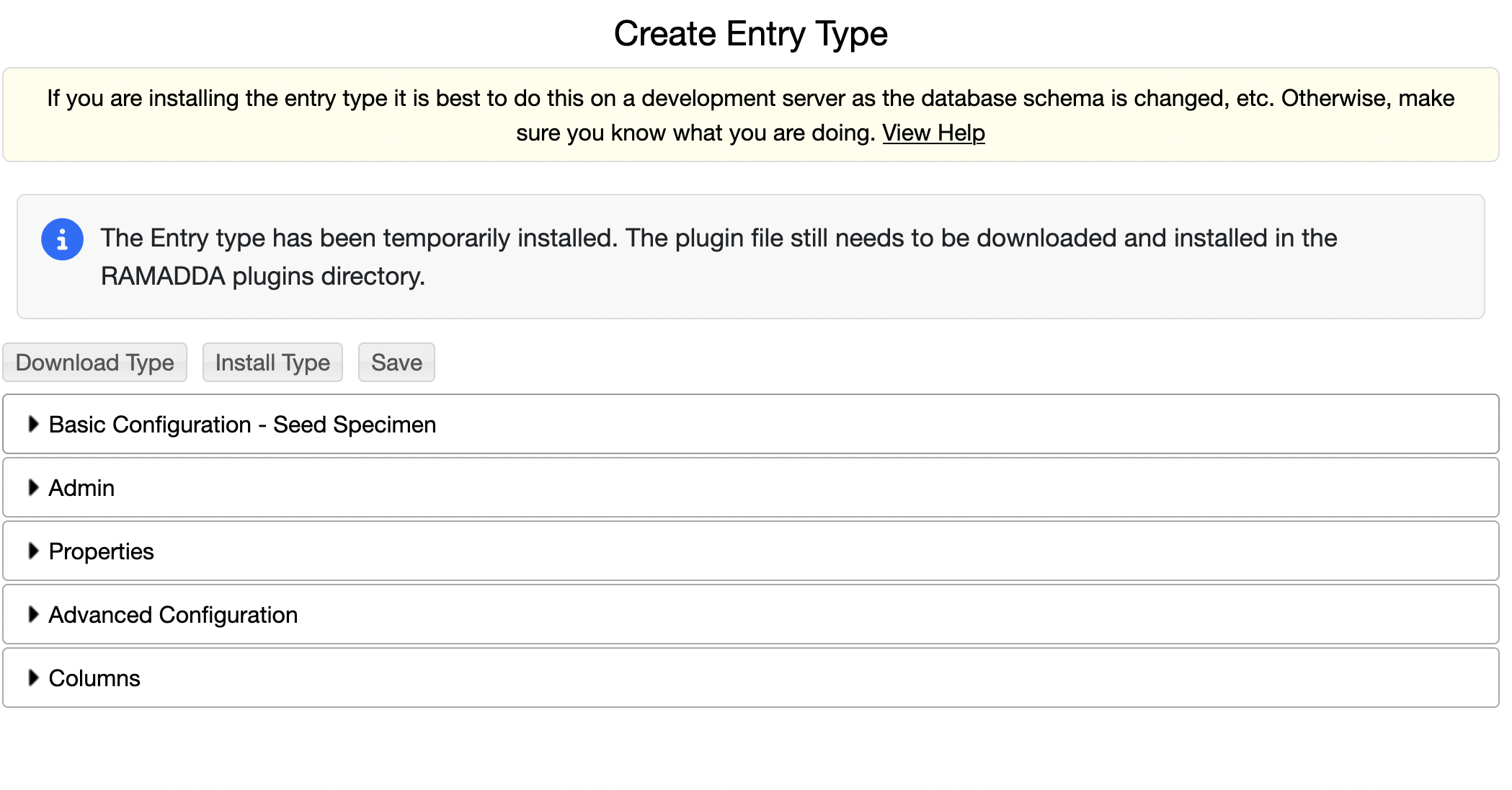 and go to the Create Entry Type form. Note: the type definitions are saved as a regular RAMADDA metadata property
