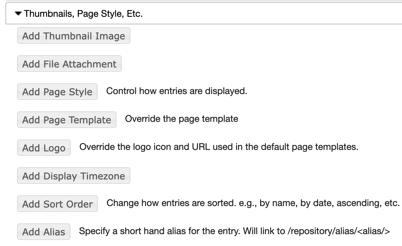 Thumbnails, Page Style, Etc., section: