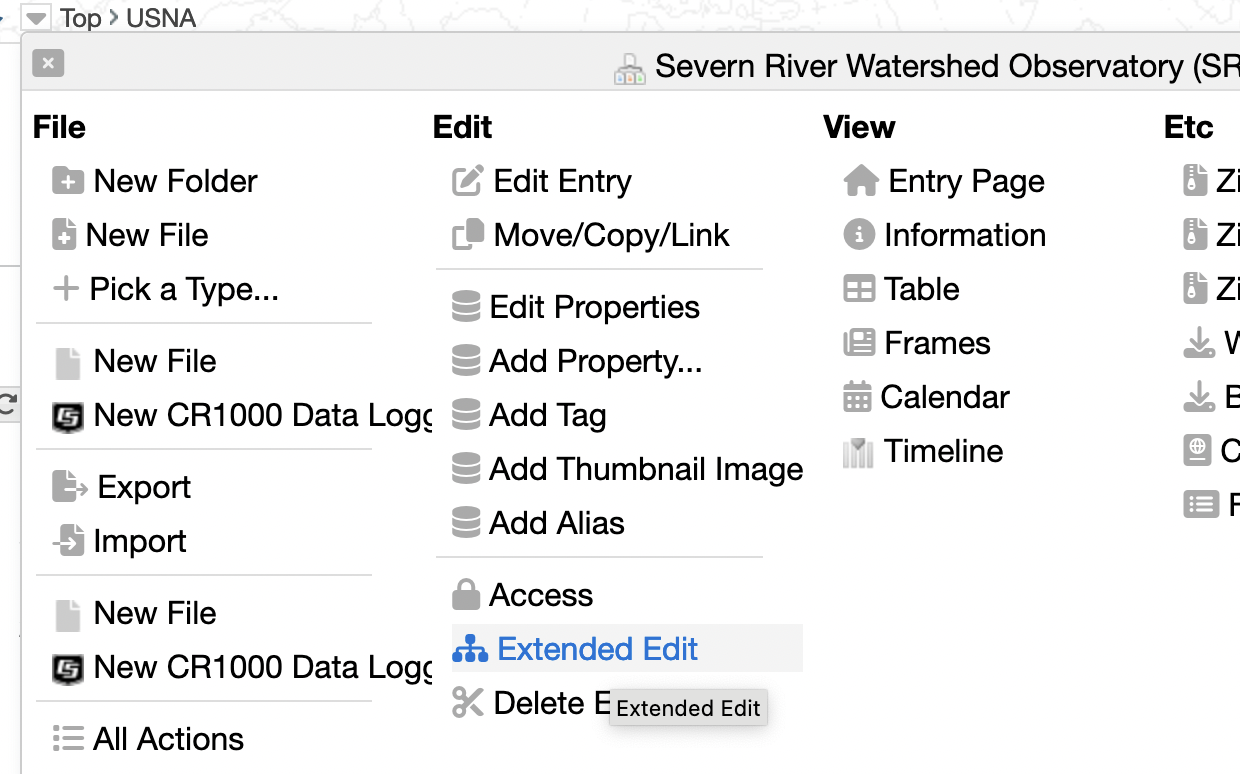 | Note: for entries that have special attributes (e.g., Project, Point Data) when you change the type to a different type the special attributes will be deleted.