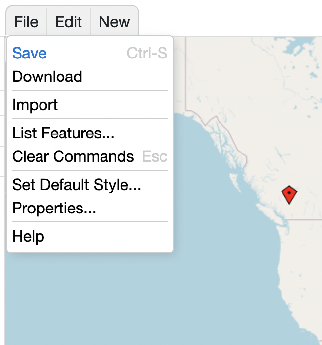 The File menu allows you to Save the map. The map is saved as a JSON file associated with
