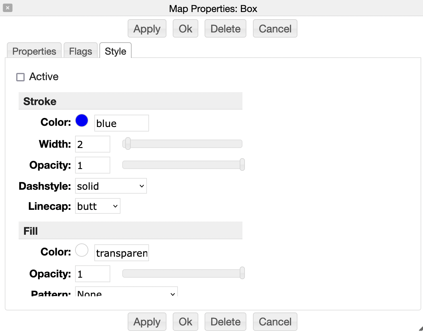 The Active button, if set, will apply the style to the glyph when it is changed in the form.