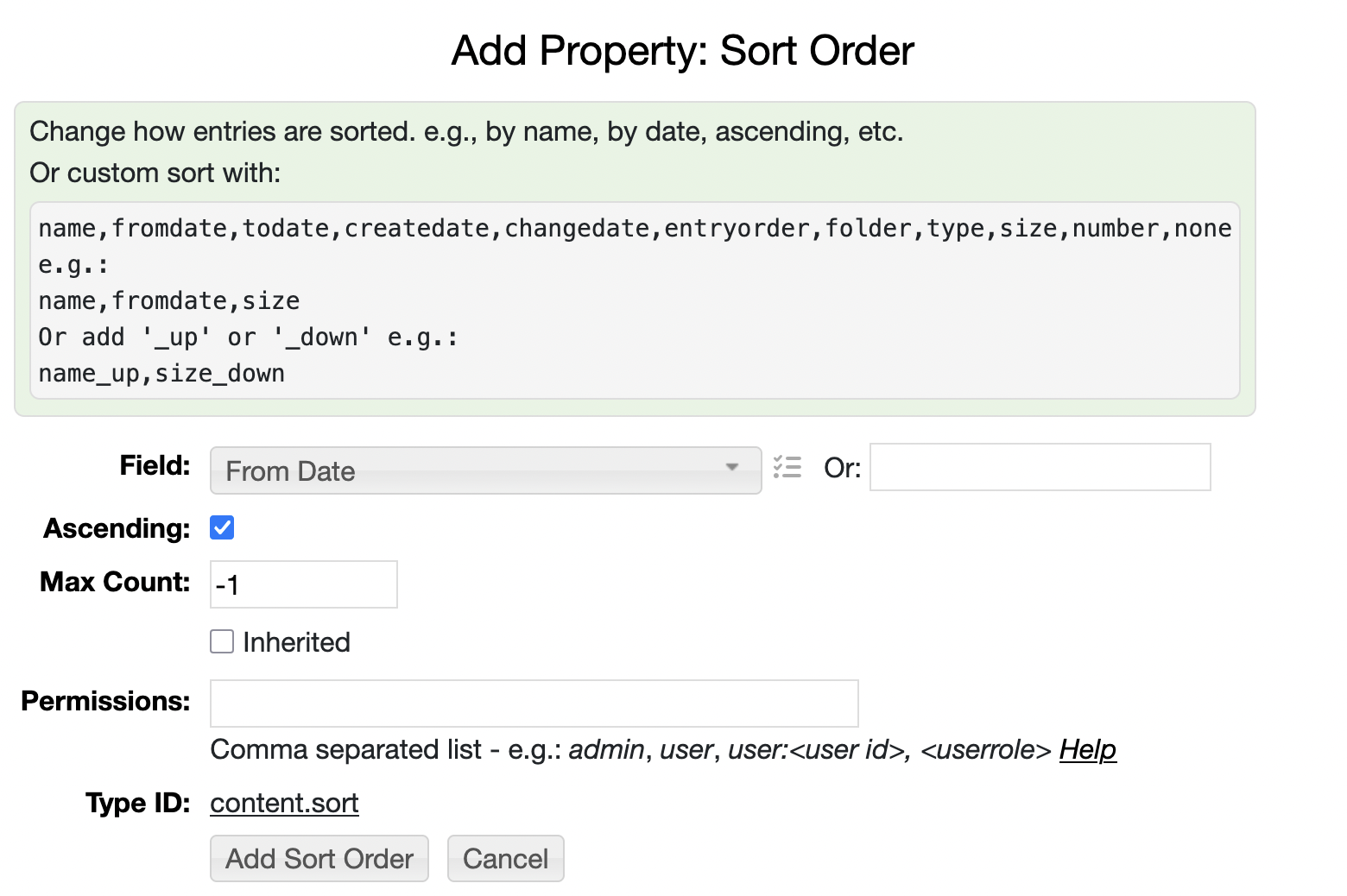 | Note: you can configure a sort order for an entire tree of entries by checking on "Inherited".