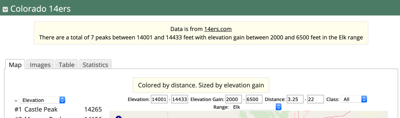 shows Colorado 14k foot peaks data. The display uses